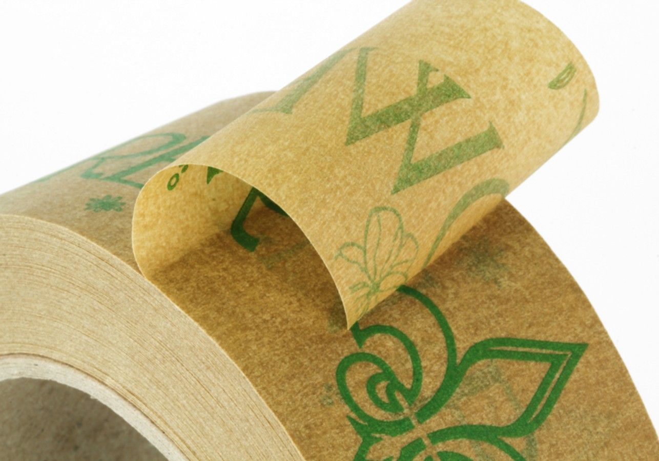 Papier kraft enduit avec un adhésif à base de caoutchouc naturel blanc sans chlore et sans silicone au déroulement silencieux.
