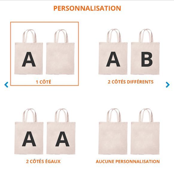 Personnalisation : 1 côté, 2 côtés différents, 2 côtés égaux