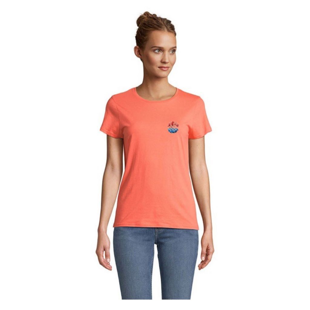 T-shirt femme jersey col rond ajusté. Coton biologique 150 g/m².