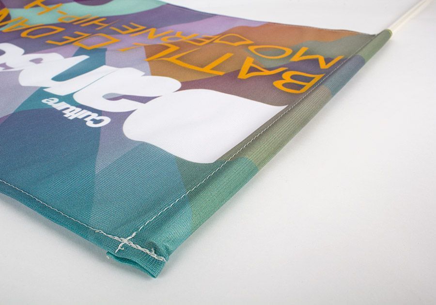 Drapeau avec hampe PVC de 9 mm de diamètre et 75 cm de long.