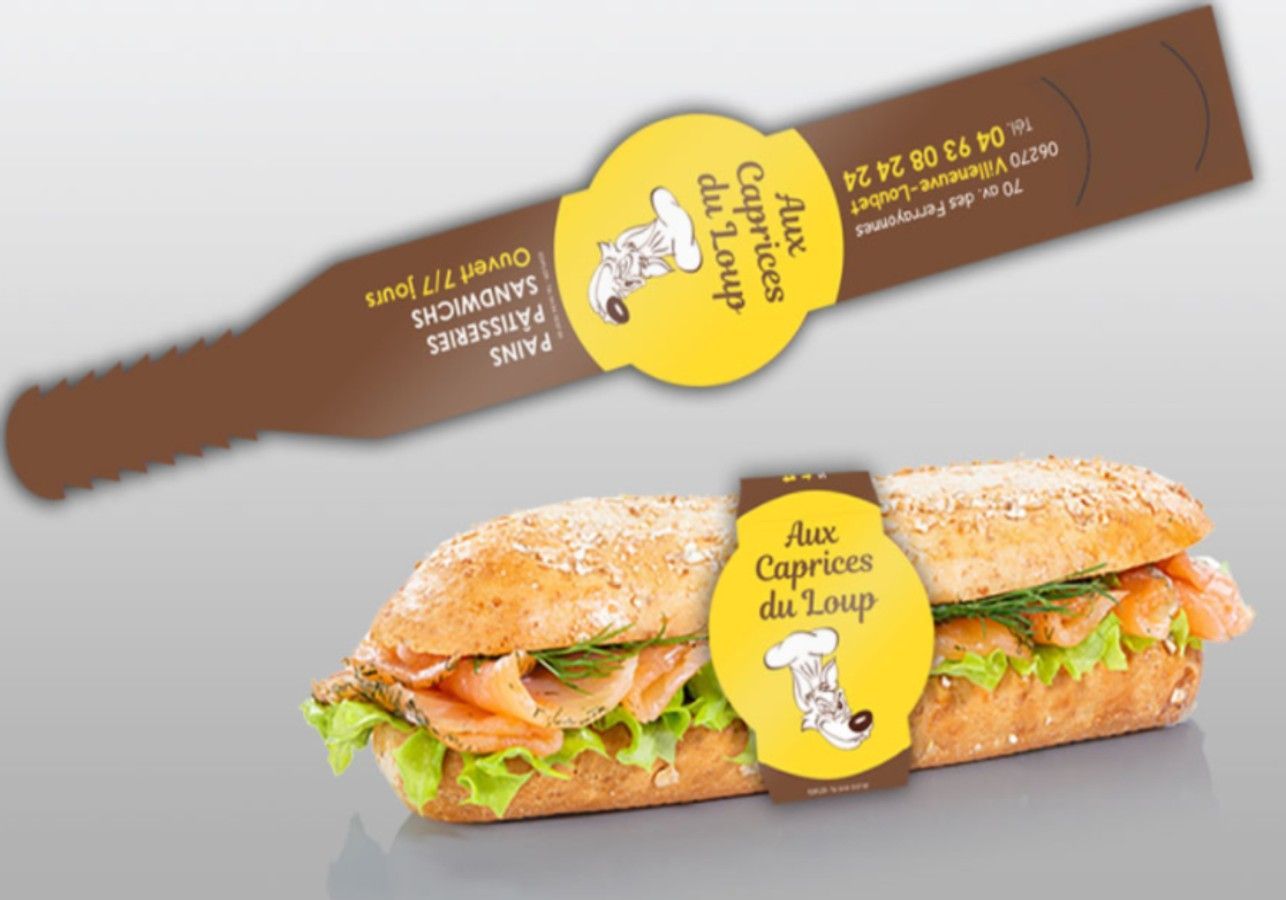 Bague sandwichDécouvrez la bague sandwich en papier couché brillant de qualité supérieure. Elle maintient vos sandwichs, burgers ou wraps en place sans débordements. Pratique et élégante, elle ajoute une touche sophistiquée à vos repas et permet de communiquer efficacement avec vos clients. Style et fonctionnalité assurés.