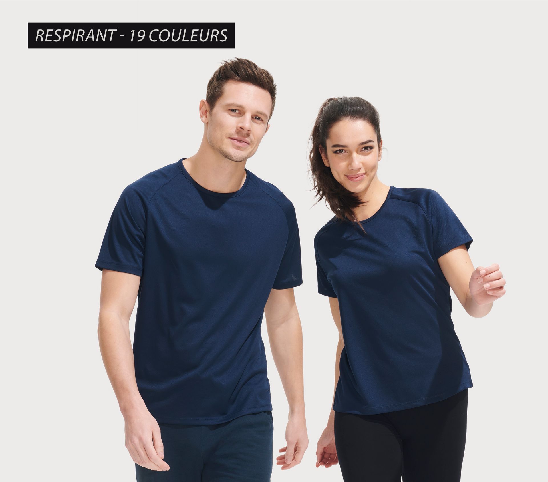 T-shirt performance Sol's, tissu respirant. Mesh polyester 140 g. 100 % polyester effet respirant - Dri-fit.